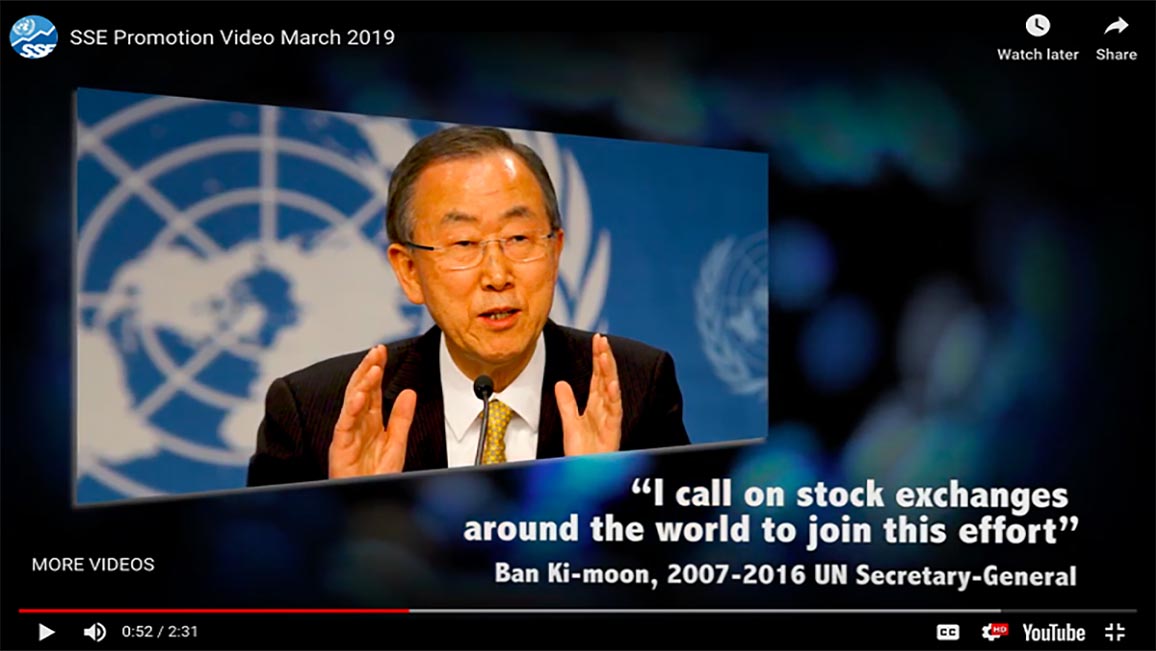 In 2009 UN Secretary-General Ban Ki-Moon opened the first SSE Global Dialogue in New York City. Participants were comprised of stock exchanges, institutional investors and representatives of the WFE and IOSCO.