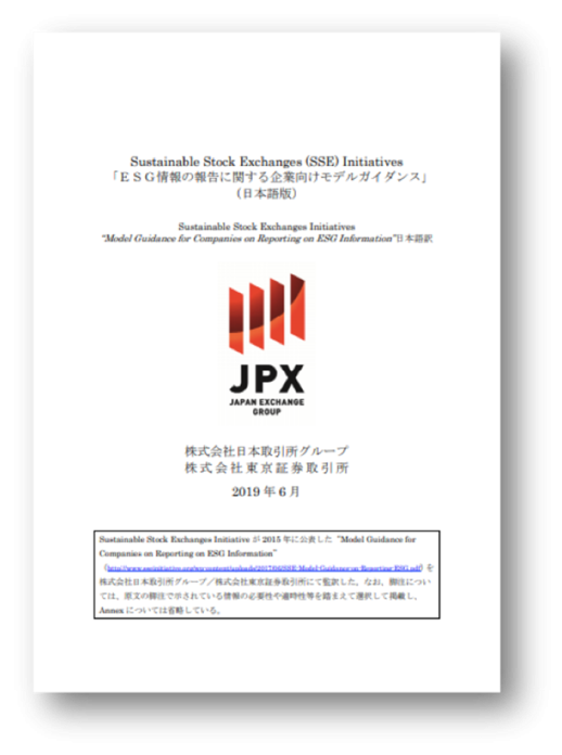 (3 June 2019) The Japan Exchange Group published a Japanese translation of the SSE Model Guidance on Reporting ESG Information to Investors and encouraged listed companies to make use of this resource. The Japan Exchange Group is a member of the SSE initiative since 2017, and the Japan Corporate Governance Code stipulates that listed companies should consider taking positive and proactive measures to address sustainability issues.