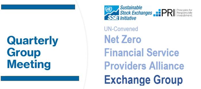 The Net Zero Financial Service Provider Exchange Group hosts quarterly invite-only calls that serve as a platform for peer-to-peer learning, collaboration, and knowledge-sharing among exchanges and financial service providers committed to net zero goals.